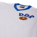 Weißes Trikot der Nationalmannschaft der DDR, das sie 1974 als 2. Ausstattung bei ihrer einzigen Teilnahme an einer WM trugen. In der Vorrunde gewannen sie gegen Australien 2-0. Danach trugen sie genau dieses Trikot im Spiel gegen Chile, das mit Toren von Hoffmann und Ahumada 1-0 Unentschieden endet. Im letzten Spiel, das historische Duell gegen die westdeutsche Mannschaft, gewannen sie durch ein Tor von Jürgen Sparwasser. Viele vermuteten, dass die westdeutsche Mannschaft sich absichtlich besiegen ließ, um die starken Mannschaft in der zweiten Runde zu vermeiden. Aber dies ist nur eine Spekulation.