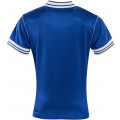Das Königsblaue Trikot besitzt einige weiße Akzente. So sind der Kragen, das Vereinslogo, der Sponsor sowie der Sponsor, des kurzärmeligen Trikots in weiß gehalten.