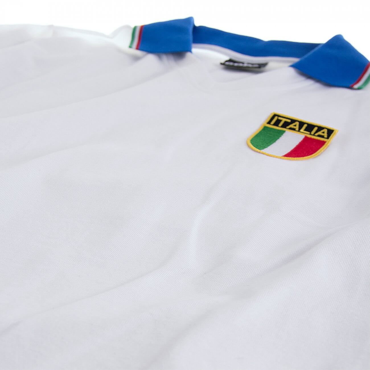 Die wichtigsten Änderungen des Trikots im Vergleich zu dem 70er Jahren sind die "tricolor" (grün, rot und weiß, wie die Flagge) Details in den Hals (diesmal im Polo-stil) und an den Ärmeln; ausserdem wird die Abkürzung "FIGC" (Federazione Italiana Gioco Calcio) im Schild hinzugefügt.