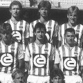80er Jahre Retroshirt im traditionellen SK Rapid Wien Look mit grün-weißen Streifen.
